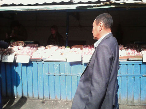 На мясо мужчине выделено 1084 сома, женщине — 1046. Я купил на полагающуюся сумму 2 кг говяжьей печени, за которую выложил 300 сомов (если не обжираться, смогу «растянуть» ее на неделю), а на оставшиеся 784 сома взял 3,1 кг козлятины (из расчета по 100 г на день), которую предприимчивые торговцы часто выдают за баранину.