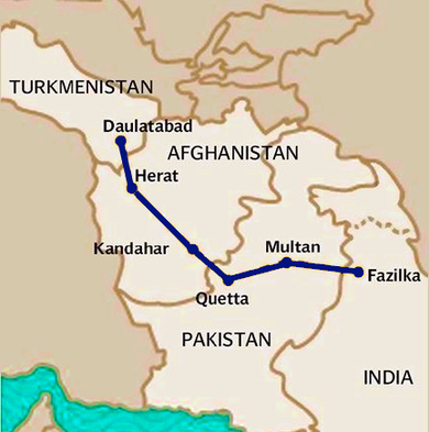 Например, строительство TAPI – газопровода, который должен связать Туркменистан с Афганистаном, Пакистаном и Индией. Его протяженность составит 1735 км, а мощность – 33 млрд куб. м газа в год.