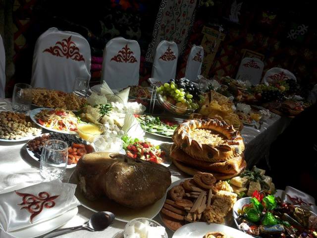 После театрализованных представлений гостей встречали в юртах, где уже подавали к столу традиционные блюда кыргызской кухни, а на столе томились закуски, боорсоки и хлеб. Кстати, ему на празднике уделили особое внимание. Юрта Свердловской районной администрации столицы угощала гостей 15 видами хлеба. Ближе к вечеру на джайлоо прошел фестиваль фольклорных ансамблей.