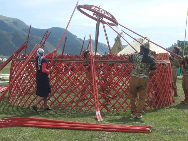 Но, пожалуй, самым волнительным для зрителей стало то, что на их глазах шестеро мужчин собрались побить мировой рекорд по сбору юрты и установить новый рекорд. Кыргызскую юрту собрали за 17 минут. В последний раз рекорд поставили монголы в 2006 году, которые собрали свою традиционную юрту за 1 час 12 минут. Наши же управились гораздо быстрее.