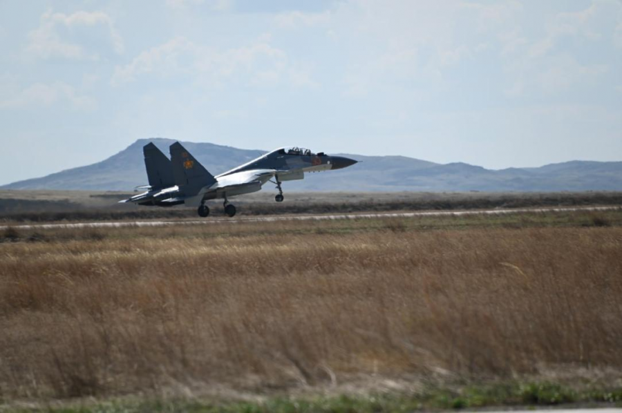 На авиационной базе имени Нуркена Абдирова продолжаются интенсивные тренировочные полеты в рамках подготовки к предстоящему параду Победы, который состоится 7 мая в Астане.