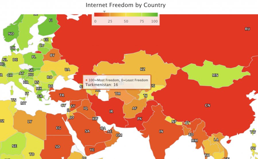 Туркменистан снова полощут, называя аутсайдером по уровню свободы Интернета. Интернет-цензура у нас зверская, что не может нравиться "просвещенной" Европе и США. У нас 16 баллов из 100. У соседней получше картинка.