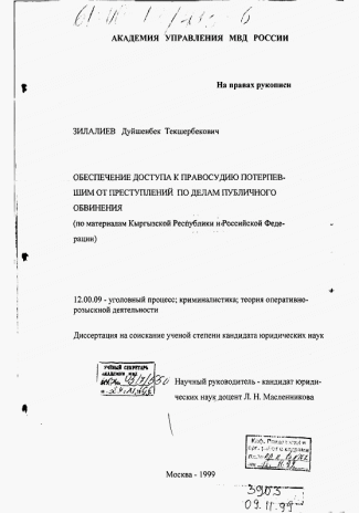 Диссертацию Дуйшенбек Зилалиев писал на тему: "Обеспечение доступа к правосудию потерпевшим от преступлений по делам публичного обвинения По материалам Кыргызской Республики и Российской Федерации".