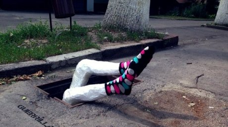 В ямах на дорогах появились бутафорские ноги, которые создают впечатление того, что внутрь провалился человек. Как рассказал представитель креативного агентства, помимо прочего у проекта есть практическая польза - ямы на дорогах видно издалека и автомобилистам стало проще их объезжать. "Мы подошли к этому вопросу с иронией. Не стали традиционным способом кричать, что у нас в городе ямы и это плохо. Просто выделили эту проблему и показали, что ее нужно решать", - отметил он.