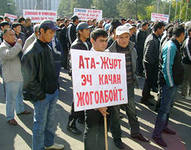 Главное требование участников акции протеста - освобождение из-под стражи троих оппозиционных депутатов от фракции "Ата-Журт" Садыра Жапарова, Камчыбека Ташиева и Таланта Мамытова. Они были арестованы в октябре 2012 года за призывы к насильственному захвату власти. Кроме того, митингующие требовали денонсировать соглашение с крупнейшим в стране инвестором на золотодобывающем предприятии "Кумтор".