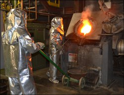 На входе в плавильный цех - тщательный досмотр, подписала две бумаги: одну о том, что нельзя снимать лица работников цеха и сейф, во второй указывается точное время посещения.