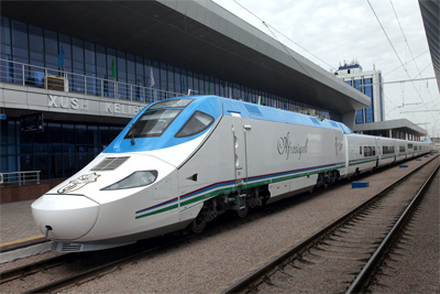 «Гордостью Узбекистана является современный высокоскоростной электропоезд «Афросиаб» производства испанской компании «Талго». Подобные поезда имеются всего в восьми странах мира. Сегодня он ежедневно курсирует по маршруту Ташкент-Самарканд-Ташкент, преодолевая расстояние между этими городами в 344 километра всего за 2 часа, что в корне меняет отношение и взгляды людей на этот вид транспорта», - сказал Президент.