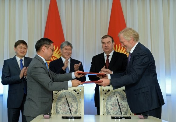 В присутствии Президента Кыргызской Республики Алмазбека Атамбаева Соглашение о кыргызско-российском Фонде развития подписали заместитель министра финансов Кыргызской Республики Мирлан Байгончоков и заместитель министра финансов Российской Федерации Сергей Сторчак.