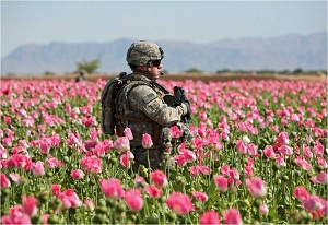 Производная курса США в Афганистане – запредельное производство наркотиков. За время натовского пребывания в Афганистане оно возросло там в десятки раз. В ИРА сосредоточено 90% мирового производства героина, из которого не менее 25% направляется по "северному маршруту", проходящему через территорию государств Центральной Азии в Россию. По оценкам ООН, в год от афганского героина у нас умирает до 10 тысяч человек. Число людей, которые ежегодно умирают от передозировки героина, к примеру, в странах НАТО (также свыше 10 тысяч человек) в пять раз превышает общее число военнослужащих альянса, убитых в Афганистане в период с 2001 по 2009 год.