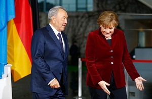О посредничестве Назарбаева заговорили в конце декабря, когда казахстанский лидер посетил Киев, а затем отправился в Москву. В тот момент немецкая пресса со ссылкой на свои источники сообщила, что Назарбаев позвонил Меркель и выразил свое мнение по поводу ситуации. Подробности разговора не разглашались, как затем не были преданы огласке итоги личной беседы Меркель и Назарбаева в начале января. Президент Казахстана побывал в Германии с неофициальным визитом, а поэтому его пресс-конференция не была запланирована, пояснили прессе немецкие чиновники.