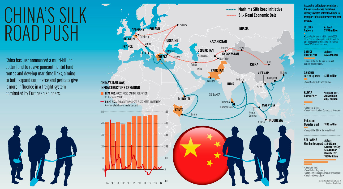 Сегодня уже ясно, что интеграционный аспект в китайском проекте не главный параметр. Возможно, он даже не будет активно присутствовать, поскольку полномасштабную интеграцию 21 государства сложно полностью реализовать. К тому же Китай это делает независимо от данного проекта — существует около 20 свободных экономических зон с разными государствами в разных форматах. В данном проекте, видимо, на первое место выйдет инфраструктурная и транспортная составляющая, а второй элемент — это содействие внутреннему социально-экономическому развитию стран-партнеров по «Великому шелковому пути» в виде инвестиций и торговых связей, включая практику товарных и иных кредитов. На это будут потрачены огромные финансы. Многие эксперты задают вопрос, почему Китай готов идти на такие колоссальные расходы, учитывая, что сегодня КНР переживает не самые лучшие времена в связи со сменой экстенсивной модели реформ на интенсивную. Заметен некоторый спад прироста годового ВВП до 7,6% за 2014 г. Возможно, что в основе мотивации лежат не только будущие экономические выгоды, но и геополитические расчеты, надежды создать в Евразии «базу роста» для будущей великой евразийской державы, которая может позволить себе такой мегапроект. Причем, проект раскручивается с личного благословения председателя Си, который пользуется в настоящее время в КНР колоссальной поддержкой, авторитетом и доверием у населения. Фактически, «Шелковый путь» осуществляет его идею «китайской мечты», активно продвигаемую как внутри страны, так и за ее пределами.