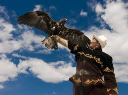 На землевзрослые мужчины и подростки, которые живут вскалистых горах Кыргызстана, могут нести хищника на своих руках, плечах, а иногда и на своей голове. Но беркуты не являются домашними питомцами. Они являются основными помощниками охотников.