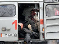 Скорая: У нас там четыре машины стоят. Направили. Там, где милиция стоит у нас, и реанимация есть, и бригады там.