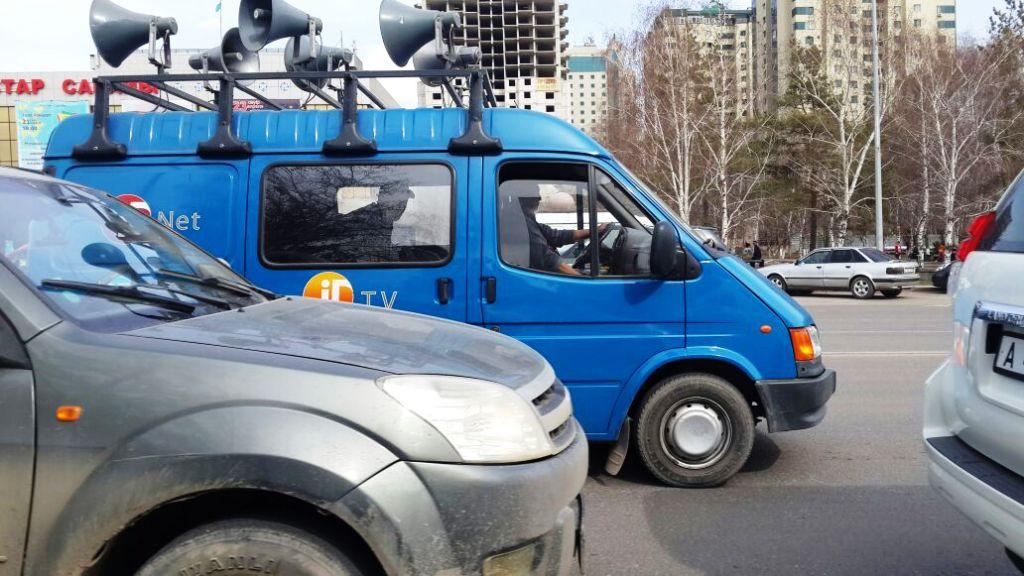 Для тех, кто не читает вывески на дорогах столицы, курсируют вот такие авто с громкоговорителями, которые призывают граждан прийти на выборы.