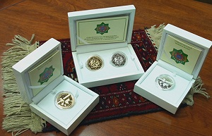 Центральный банк Туркменистана в честь запуска первого туркменского космического спутника связи «TuerkmenAelem 52°E» (Туркменская вселенная) выпустил золотые и серебряные монеты, а также комплект из этих памятных монет, сообщают в субботу местные СМИ.