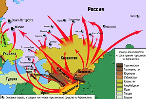 Благодаря наличию развитых трансграничных и трансконтинентальных наземных путей сообщения, воздушных трасс активизировались силы использующие территории центрально-азиатских стран в качестве транзитного коридора для наркотиков афганского происхождения.