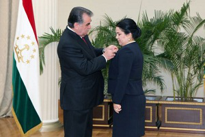 "Рахмон награждена указом президентом Таджикистана орденом "Шараф" первой степени за заслуги в развитии экономики, социальной сферы, науки, культуры и образования, за образцовую государственную и военную службу и активную общественную деятельность", - говорится в сообщении пресс-службы.
