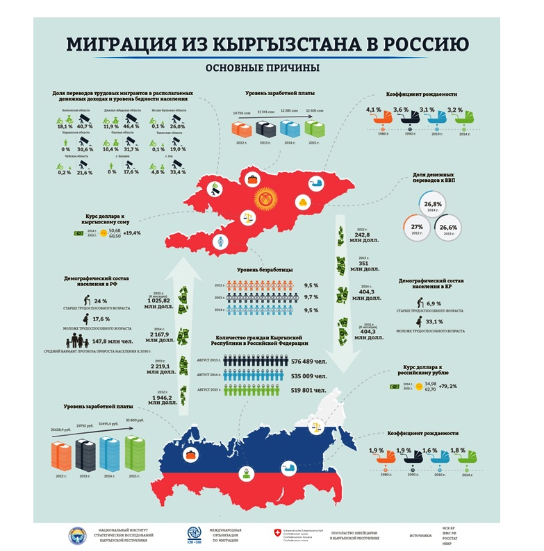 Данная инфографика подготовлена НИСИ КР в рамках проекта "Институционализация миграционного профиля в рамках глобальной программы повсеместного включения миграционной составляющей в НСУР" при финансовой поддержке правительства Швейцарии, реализуемой МОМ и ПРООН.