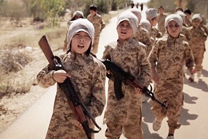 Этой осенью боевик, который представляется как Абу Айша Казахи, разместил в социальной сети видеозапись, на которой маленький ребенок проходит военную подготовку на территории, контролируемой «Исламским государством».