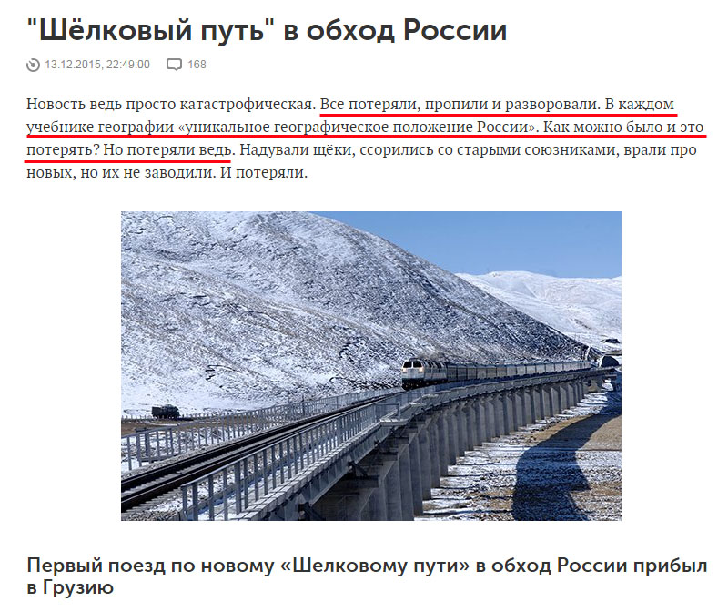Вчера и в воскресенье френды буквально засыпали меня ссылками на только что происшедшее событие всемирного значения в области транспортного сообщения в Евразии. Вот примерно на такое: