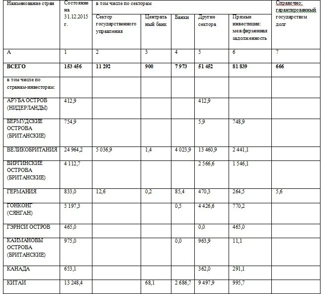 В Нацбанке также отмечают, что из общей суммы внешнего долга Казахстана в $153 млрд. 456,3 млн. на межфирменную задолженность приходятся $81 млрд. 839,5 млн. Таким образом, за вычетом последней величины внешний долг составляет $71 млрд. 616,8 млн. Платежи же по погашению и обслуживанию всего долгосрочного долга составили $37 млрд. 873,4 млн., без учета межфирменной задолженности - $26 млрд. 296,8 млн.