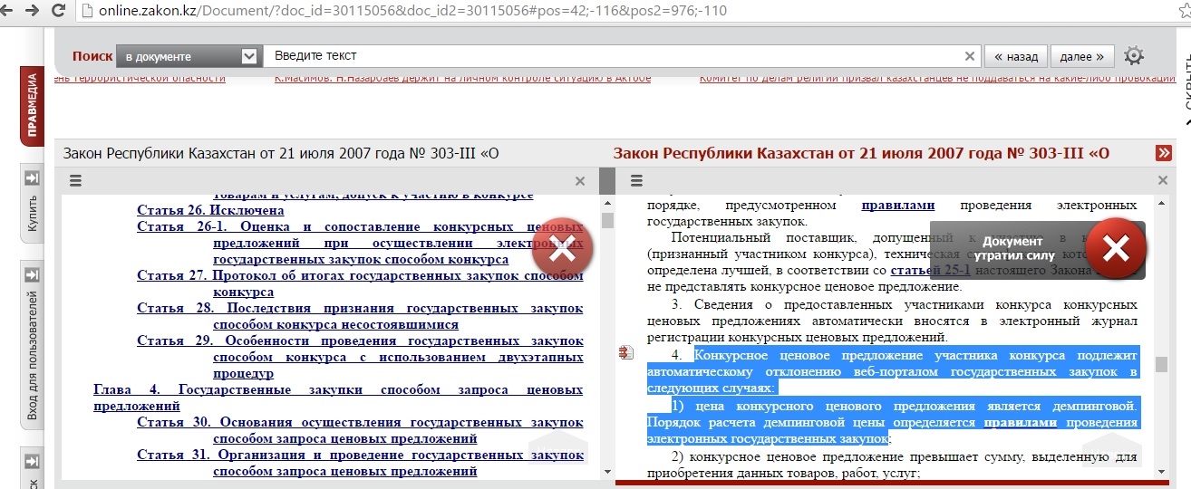 С 2016 года действует новая редакция закона РК «О государственных закупках». Из него фактически было исключено понятие демпинга – когда потенциальный поставщик намеренно заявляет предельно низкие суммы, поскольку на таком конкурсе предпочтение отдаётся самому дешёвому. Старый закон гласил: