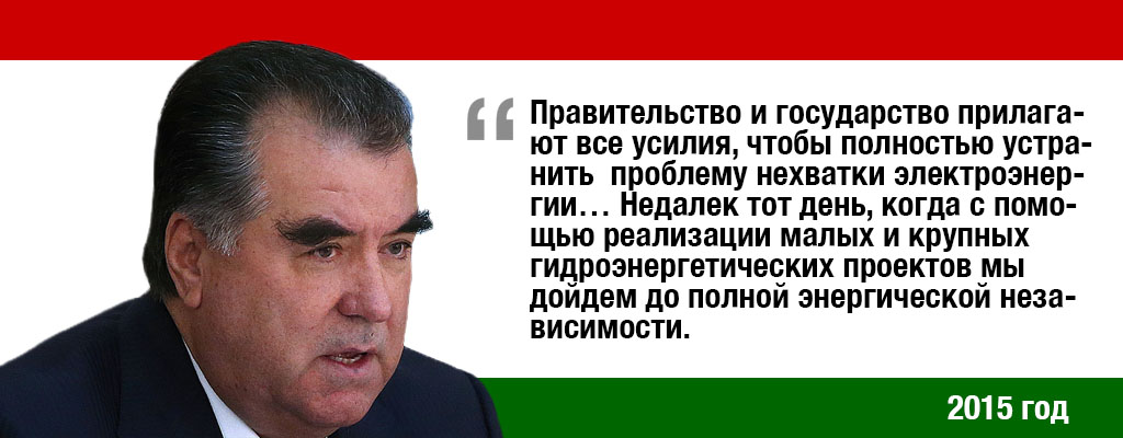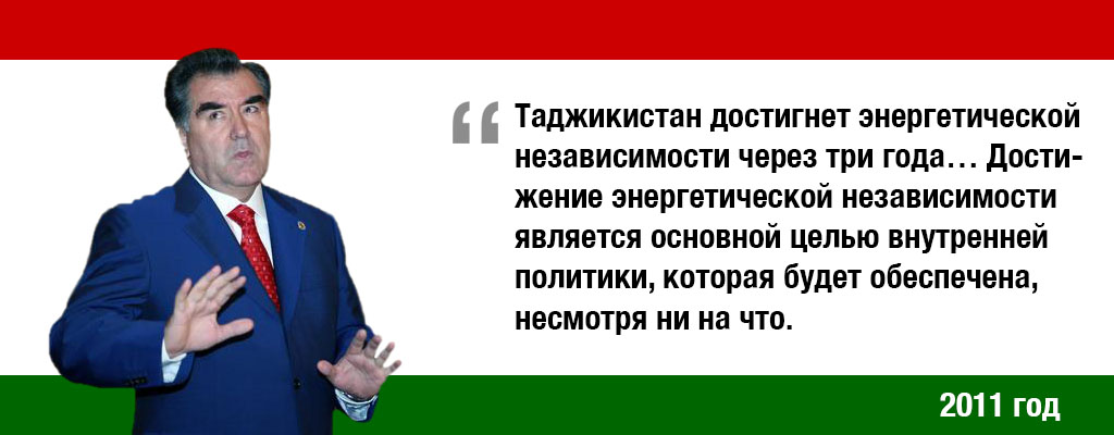 К слову, о полной энергетической независимости уже давно мечтает вся страна. Особенно зимой и осенью, когда в регионах Таджикистана свет дают не больше, чем на 8 часов в сутки. Без лимита живет только столица. Учитывая, что Узбекистан больше 10 лет не поставляет Таджикистану природный газ, а системой централизованного отопления охвачены лишь несколько улиц в Душанбе, электроэнергия является единственным источником тепла во время пусть и не суровой, но все-таки зимы.