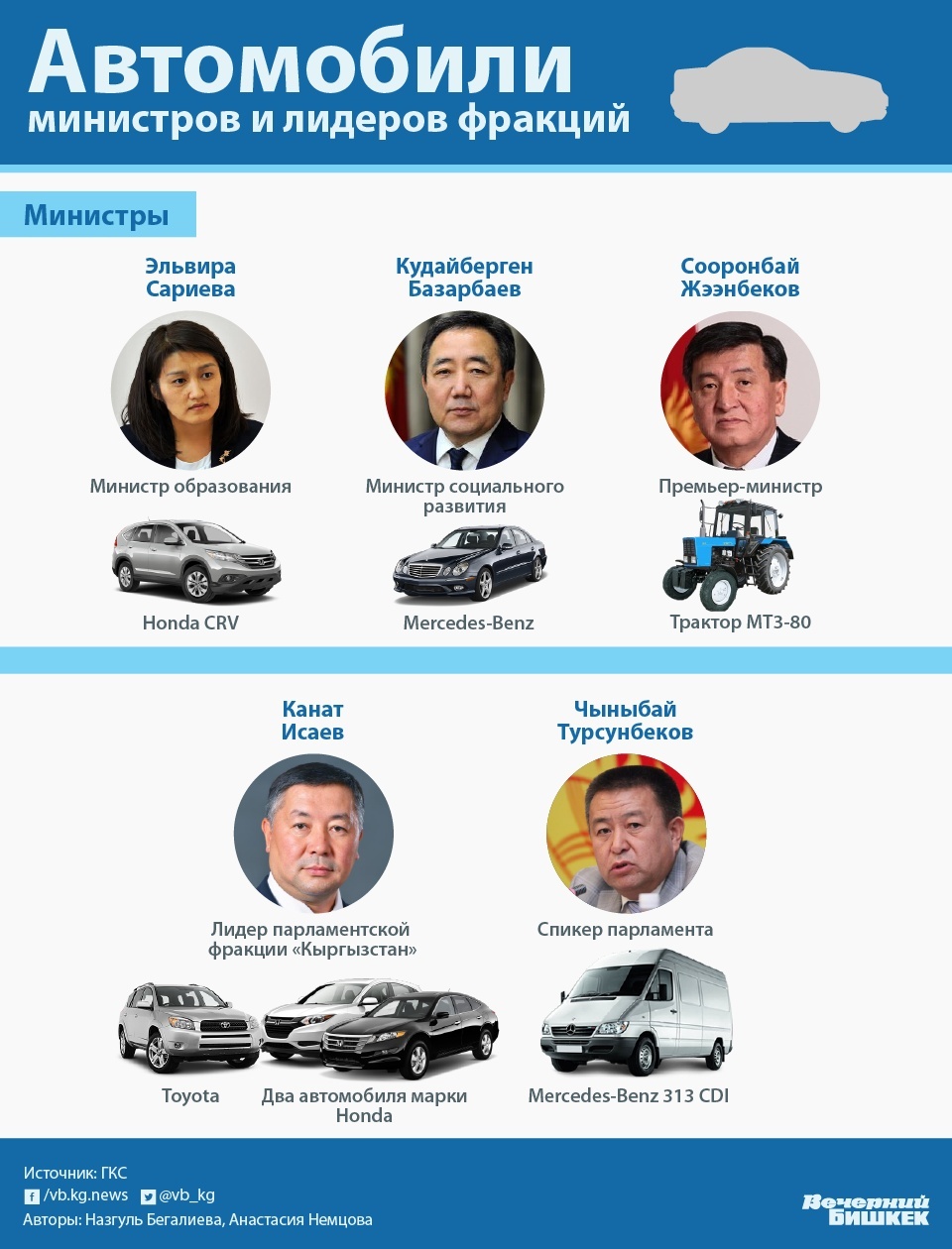 Ни для кого не секрет, что почти все, кто занимает высокие и ответственные посты, - владельцы "заводов, газет и пароходов". А их реальное имущество в десятки или сотни раз превышает доход республиканского бюджета (124,4 млрд сомов. - vb.kg).