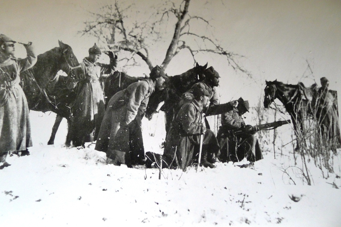 Красноармейцы Гиссарского экспедиционного отряда Красной Армии на подступах к Дюшамбе. 20 февраля 1921 года.