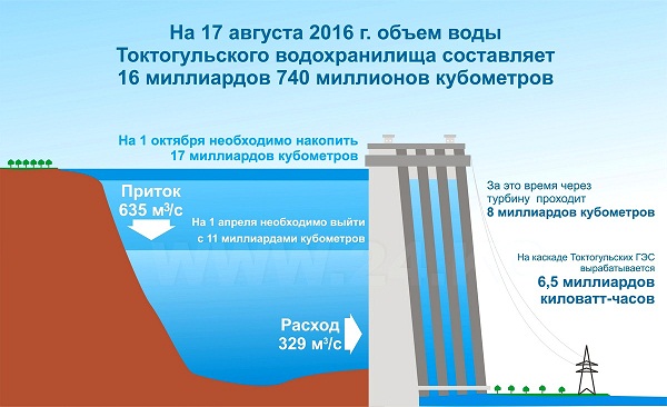 На этот год синоптики дали радужный прогноз: маловодный период в Кыргызстане завершился. Однако энергетики не спешат радоваться. Чтобы выйти весной с оптимальным объемом воды, нужно пройти зиму в условиях жесткой экономии. На 1 октября 2016 года в Токтогулке планируется накопить 17 миллиардов кубометров воды, к 1 октября 2017-го выйти с объемом не менее 11 миллиардов кубов, при этом в течение отопительного периода через турбины срабатывается около 8 миллиардов кубов. Следует отметить, правительство намерено указать в постановлении, что весной в водохранилище должно остаться 13 миллиардов кубов.