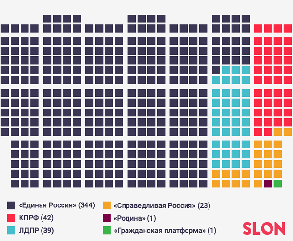 Распределение мест в Госдуме VII созыва. Инфографика: slon.ru