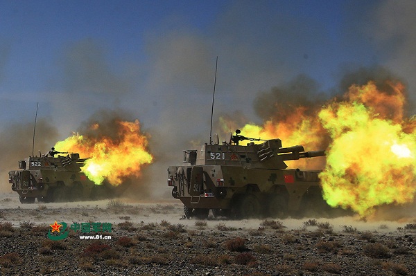 Китайская самоходная артиллерия ведет огонь.