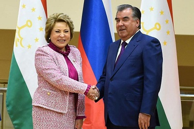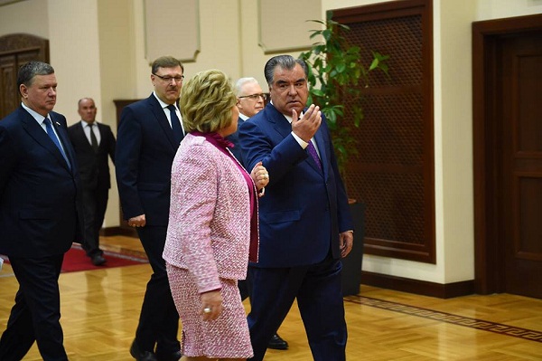 Президент Таджикистана Эмомали Рахмон сегодня принял в столичном Дворце нации председателя Совета Федерации Федерального собрания России Валентину Матвиенко, которая в среду вечером прилетела в Душанбе.