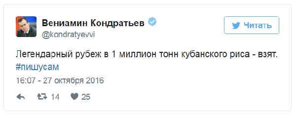27 октября губернатор Краснодарского края Вениамин Кондратьев сообщил в своем Twitter о том, что в регионе был собран рекордный урожай этой культуры.