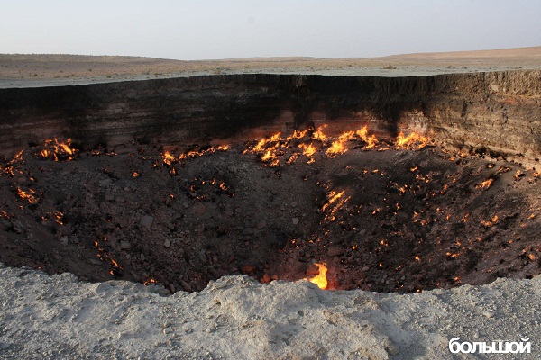 Кроме северокорейского культа личности, Туркменистан манил меня еще одним уникальным местом — Дарвазой, настоящим филиалом ада на Земле. Представьте себе вечный огонь 60 метров в диаметре и 20 метров в глубину, а для полноты ощущений — в темное время суток. Так выглядит газовый кратер посреди пустыни, который местные жители именуют «Вратами Ада». В 1971 году, в результате неправильного бурения, на этом месте образовалась огромная яма, заполненная газом, в которую провалилась буровая вышка со всем оборудованием. Чтобы предотвратить выход наружу вредных для людей и скота газов, геологи решили их поджечь, рассчитывая, что через пару дней пожар утихнет. В результате вот уже 45 лет можно наблюдать настоящие «Врата Ада».