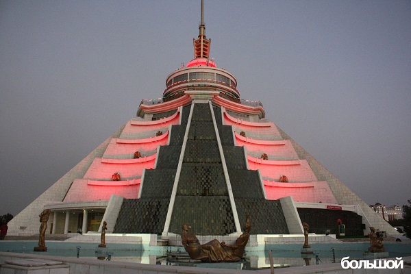 Чем манил меня Туркменистан? Прежде всего невиданным по размаху на постсоветском пространстве культом личности. Сапармурат Ниязов, руководитель Туркменской ССР, ставший впоследствии пожизненным президентом независимого Туркменистана, присвоил себе титул «Туркменбаши», что означает «отец всех туркмен». По всей стране были поставлены около 14 тысяч памятников и несколько золотых статуй любимого вождя. В его честь были переименованы заводы, колхозы, улицы, города и… название первого месяца в году. Гениальный Туркменбаши даже написал священную для туркмен книгу — «Рухнаму», где, между прочим, утверждал, что именно этому народу принадлежит первенство в изобретении колеса и телеги. Изучение данной книги стало обязательным для школьников и студентов, так же как и сдача экзамена на ее знание при профаттестации во всех учреждениях страны. Поговаривали, что даже на права сдать без «Рухнамы» в ниязовском Туркменистане было невозможно. И в Ашхабаде был открыт памятник этой книге.