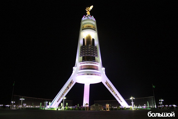 Одним из самых известных символов эпохи правления Сапармурата Ниязова и знаковых мест Ашхабада, притягивающим немногочисленных туристов, является «Арка Нейтралитета». Или, как называют ее в народе, «трехножка». Огромная позолоченная статуя Туркменбаши на восьмидесятиметровом постаменте. В течение дня статуя вращалась вместе с солнцем, символизируя тем самым солнцеподобность «отца всех туркмен». Построенная первоначально в центре города, через пару лет после смерти Туркменбаши она была перенесена на его окраину и перестала вращаться. Видимо, солнцеподобность теперь является уделом Бердымухамедова.