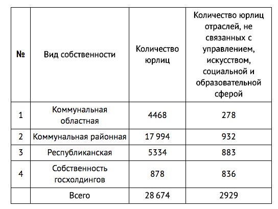 По данным Реестра государственных предприятий и учреждений, юридических лиц с участием государства в уставном капитале