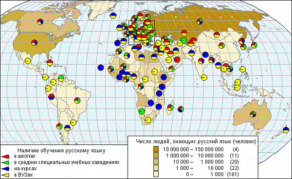 К настоящему времени население 14 бывших республик СССР насчитывает свыше 140 миллионов человек (равно по численности населению России), однако русским там активно владеют (постоянно используют на работе, в процессе обучения, в быту), по оценкам экспертов, лишь 63,6 млн человек. Еще 39,5 млн человек владеют русским пассивно (понимают его, но не используют как средство коммуникации).