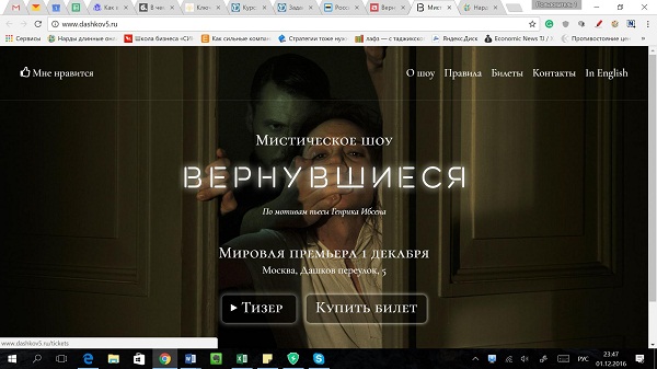 На сайте театра можно посмотреть тизер, узнать расписание, адрес и, конечно же, купить билет