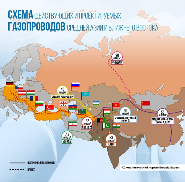 Вплоть до 2010-х гг. главным покупателем туркменского газа был не Китай, а Россия, которая связана с республикой построенным в советский период газопроводом «Средняя Азия – Центр». Других вариантов экспорта газа, кроме небольшого по пропускной способности газопровода в Иран, у Туркменистана тогда не было.