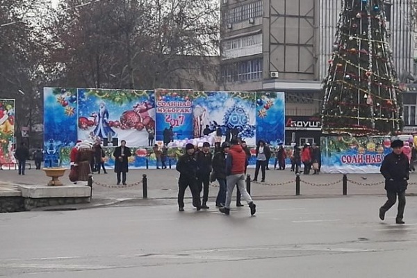 Главная площадь Худжанда, где каждый день проходят новогодние мероприятия