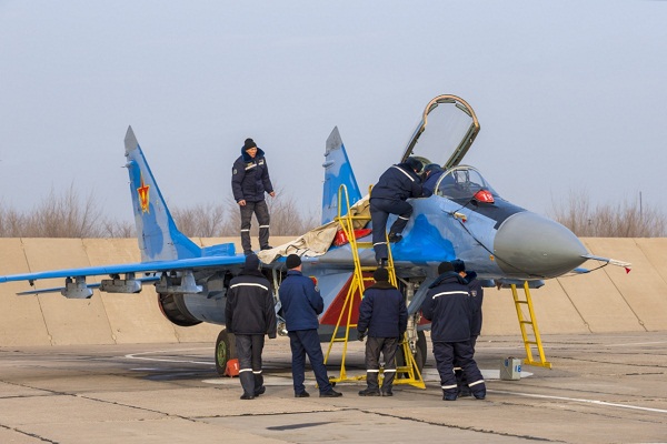Истребители МиГ-29 стоят на круглосуточном боевом дежурстве. Самолёт предназначен для короткого воздушного боя на ближних дистанциях, а частности, они должны работать по объектам несанкционированно вторгшимся в наше воздушное пространство с южного направления.