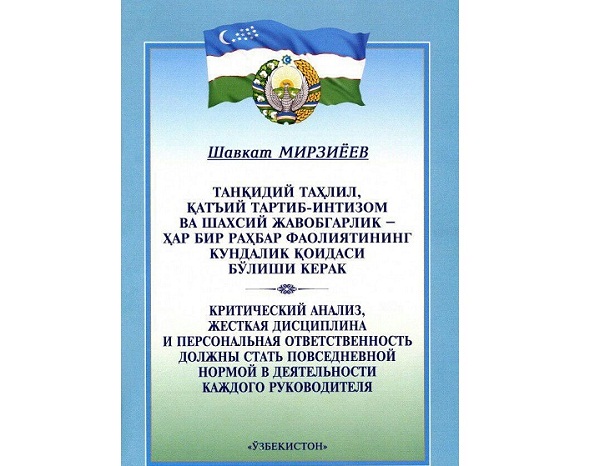 Издательский дом «Узбекистон» выпустил первую книгу президента Шавката Мирзиёева под названием «Критический анализ, жесткая дисциплина и персональная ответственность должны стать повседневной нормой в деятельности каждого руководителя», сообщает УзА.