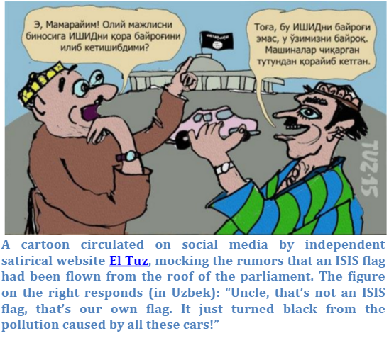 Хотя большая часть небольшого числа граждан, участвующих в сирийском конфликте, является узбеками, воюющими или на стороне, или в союзничестве с Джабхат аль Нусра (ANF), общественная и официальная реакция в Кыргызстане, а также обсуждение конфликта в социальных медиа, сосредоточено исключительно на ISIS и выражает опасения того, что потенциальное расширение Исламского государства является основной угрозой безопасности страны. В целом, онлайн деятельность граждан Кыргызстана, самоидентифицирующих себя с ISIS, а также вербовка и пропаганда группировки в этой стране значительно ниже, чем в соседних Узбекистане, Таджикистане или Казахстане. Несмотря на этот контраст, общественный и официальный дискурс о предполагаемых угрозах со стороны ISIS — который, как и в Таджикистане, происходит довольно легко в относительно свободной, но глубоко пристрастной медиа-среде — является бурным, расколотым на противоположные мнения и подверженным конспирологии обсуждением: общественные участники дискурса в социальных медиа об ISIS в Кыргызстане не только подвергают сомнению число граждан, присоединившихся к группировке, но и ее существование вообще.