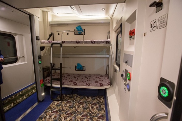 Двухместные купе бизнес-класса оборудованы персональными умывальниками и возможностью объединять два смежных купе в один. Данная опция будет удобна путешествующим вместе с детьми. Четырехместные вагоны купе благодаря новой модификации увеличены как по площади, так и по размеру спального места. Два вагона эконом-класса представлены 36 посадочными местами в каждом - удобные кресла и достаточное личное пространство позволяют планировать бюджетные поездки в комфортабельных условиях. Кроме того, в составе имеется отдельный багажный вагон, вагон-ресторан и вагон-бар.