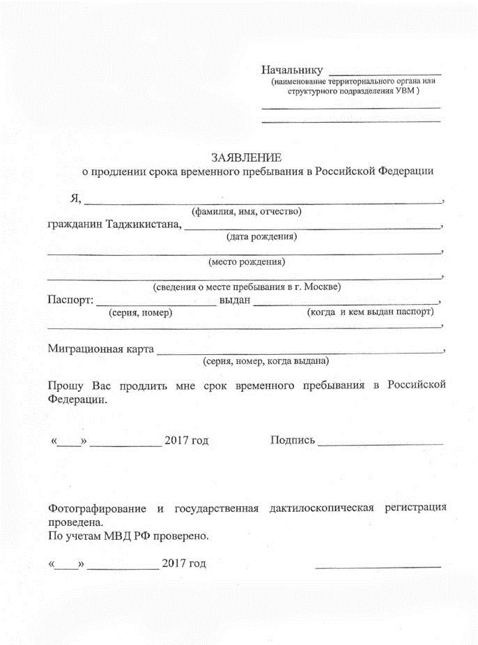 3. Далее в течение 15 дней нужно будет прийти в территориальное подразделение ГУВМ МВД (бывший ФМС), написать заявление о продлении срока временного пребывания и встать на миграционный учет.