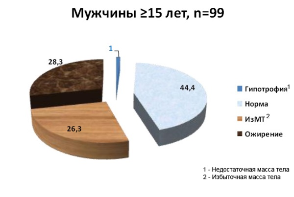 «Среди обследованных женщин 63,3% имеют избыточную массу тела или ожирение, среди мужчин – 54,6%».
