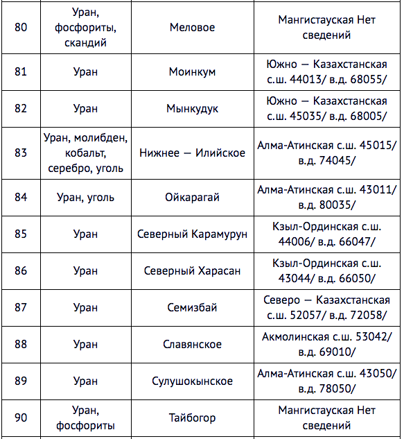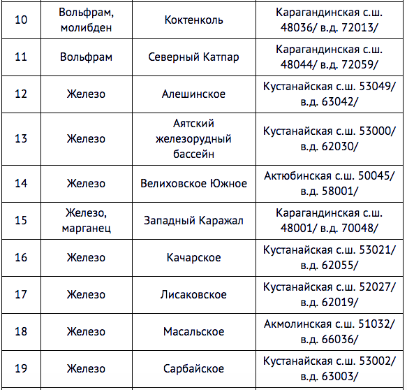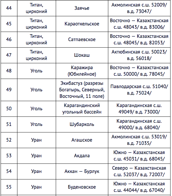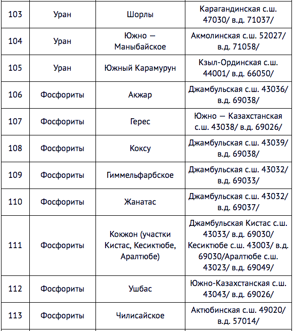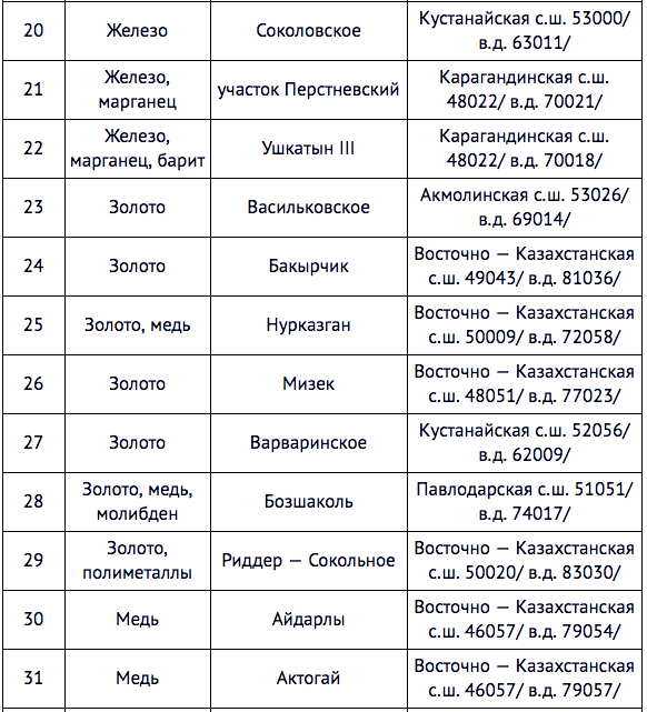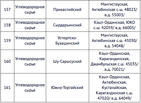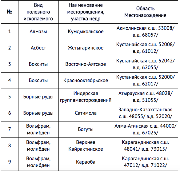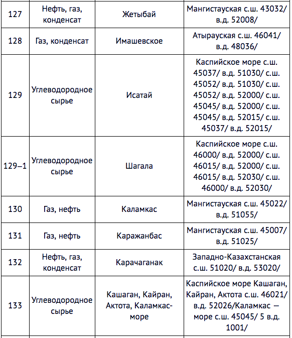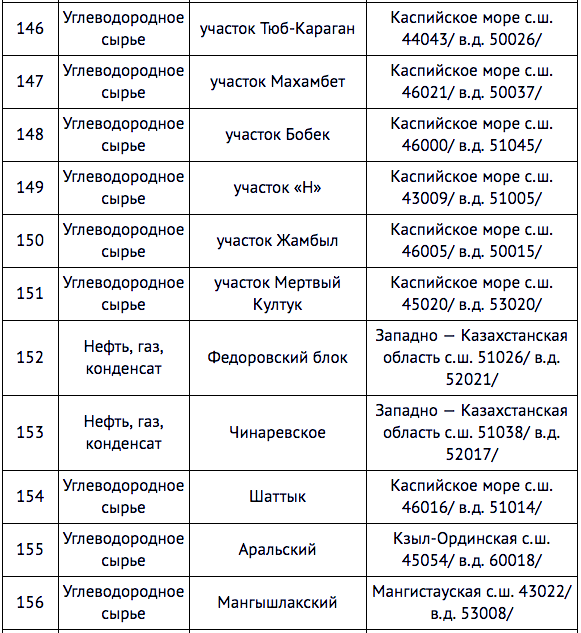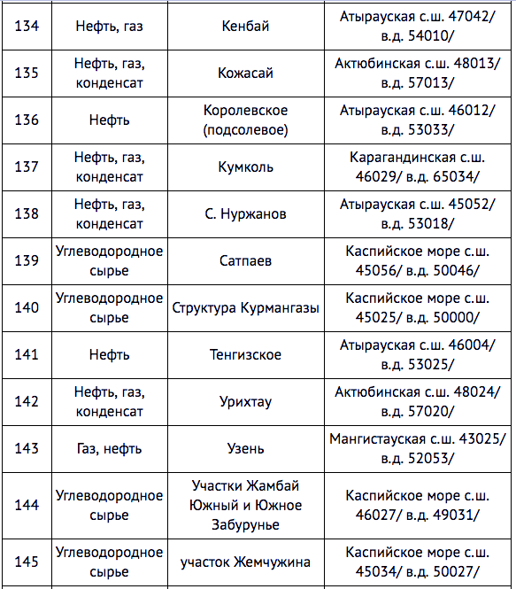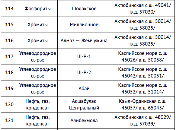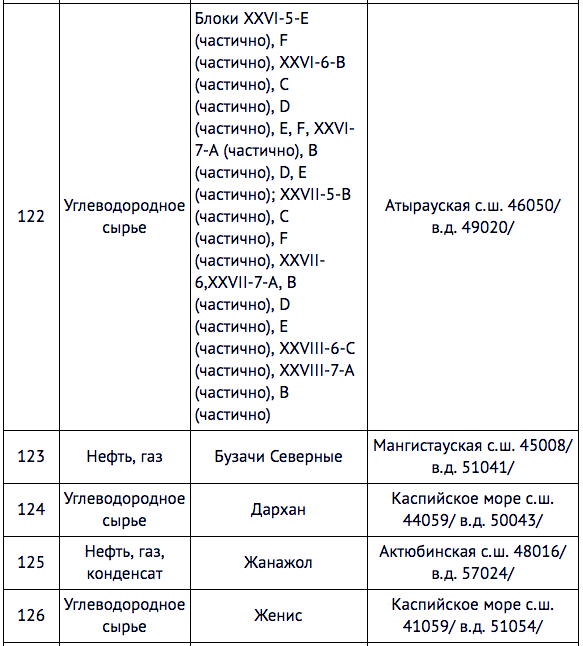 Государство и тут облегчило всем работу и составило специальный список стратегических месторождений, который регулярно обновляет. Список этот опубликован в виде постановления правительства Республики Казахстан от 4 октября 2011 года № 1137. Последние изменения в него были внесены 7 августа 2015 года, так что список вполне актуальный.