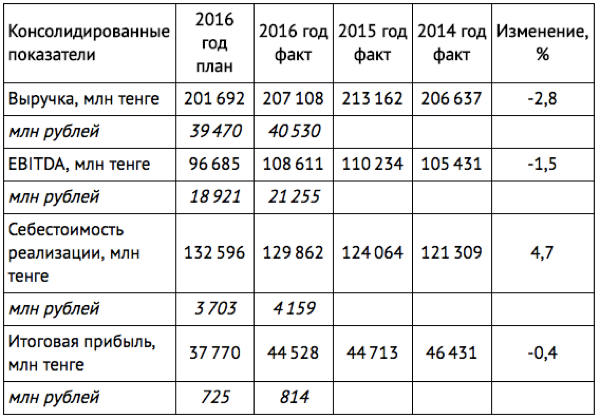 Основные финансовые показатели показаны в таблице № 3 (для пересчета взят средневзвешенный курс рубля к тенге за 2016 года по курсу Национального банка — 5,11 тенге за 1 рубль).